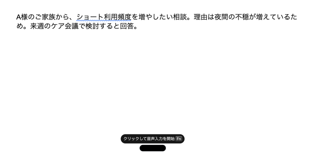褥瘡、嚥下、ADLなど、介護の専門用語は誤変換が出ます。期待値はここに置くのが現実的です。